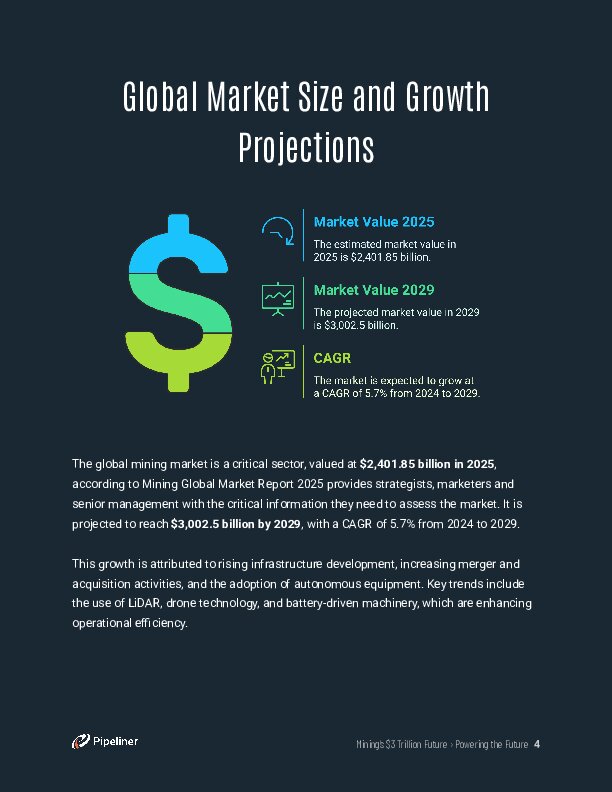 - Significant Market Expansion: Discover how the global mining market, currently estimated at $2.4 trillion in 2025, is anticipated to grow at an impressive 5.7% annually. Increasing infrastructure projects and the integration of advanced technologies fuel this surge.