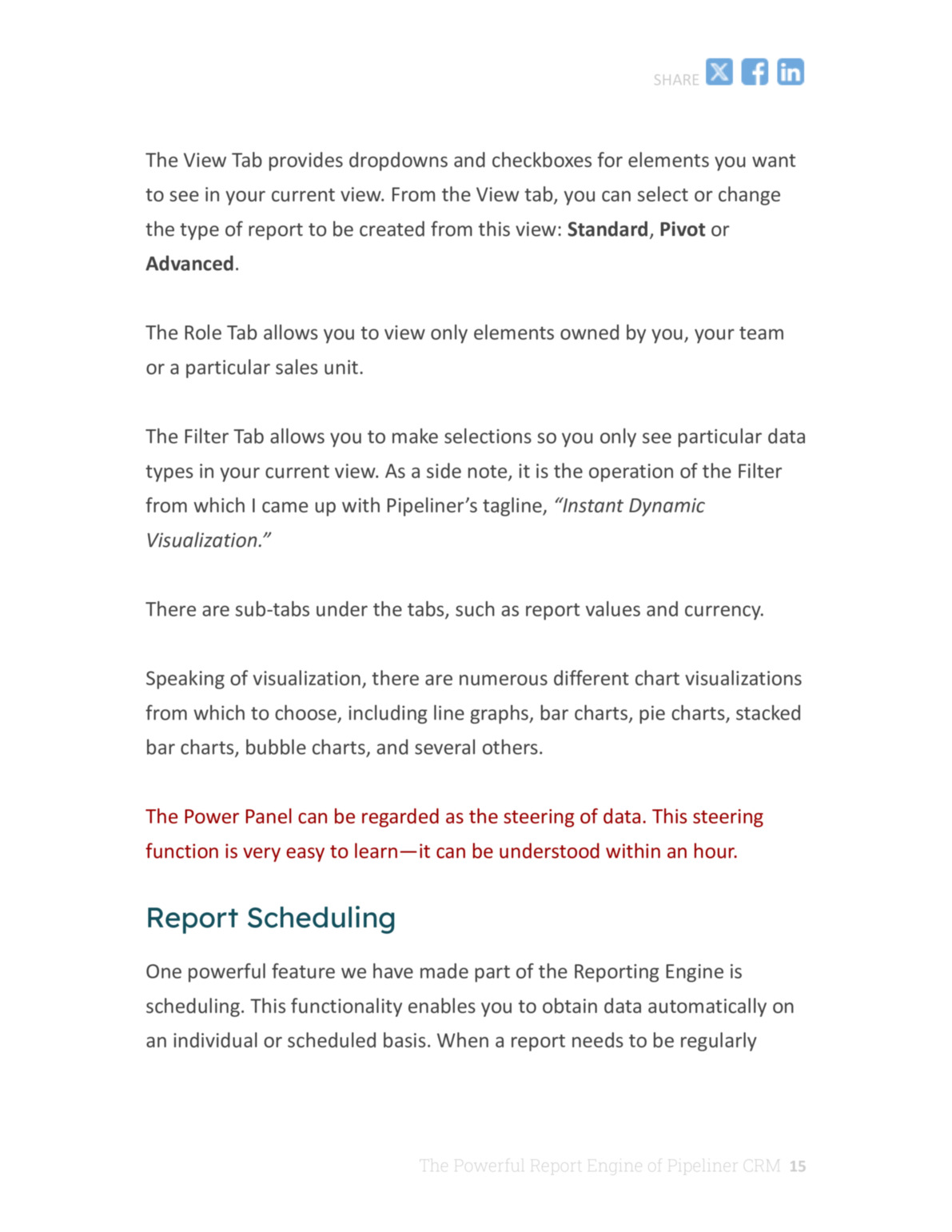 The Powerful Report Engine of Pipeliner CRM, Nikolaus Kimla argues that Pipeliner CRM offers what is likely the most flexible, visual, and powerful Reporting Engine in the CRM market. He contends that traditional CRM reporting can be time-consuming and often requires multiple people and even the IT department to create a single report. Pipeliner set out to revolutionize report creation with a focus on three core principles: complete data transparency, entirely visual reports, and ease of creation and automation. This approach gives users instant, dynamic visualization of their data, which is essential for making informed decisions<.